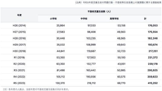 令和5年度、不登校の小中高生が過去最多の約41万5千人に上ることが「令和5年度児童生徒の問題行動・不登校等生徒指導上の諸課題に関する調査結果」にて分かりました。家庭や学校での悩みが深刻化する中、通信制高校に対する関心がますます高まっています。