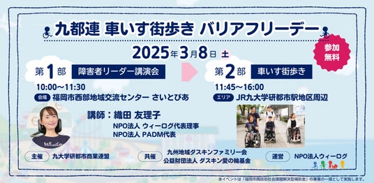 2025年3月8日(土)午前10時より福岡市西部地域交流センター さいとぴあ にて、「九都連 車いす街歩き バリアフリーデー」が開催されます。本イベントは「福岡市商店街社会課題解決型補助金」を活用して実施されます。