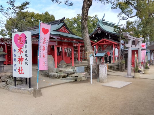 恋木神社は、福岡県筑後市にある神社。水田天満宮の末社として建立当初(鎌倉時代)より鎮座し、御祭神は「 恋命 」を祀り、全国でも珍しく恋木神社は一社のみです。名前に「恋」がつくことからもわかるように、恋愛の一大パワースポットとして有名で「良縁幸福の神様」「恋の神様」として親しまれています。