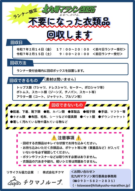 衣類の回収を、北九州マラソン2025に参加ランナーの皆さんにお願いします。